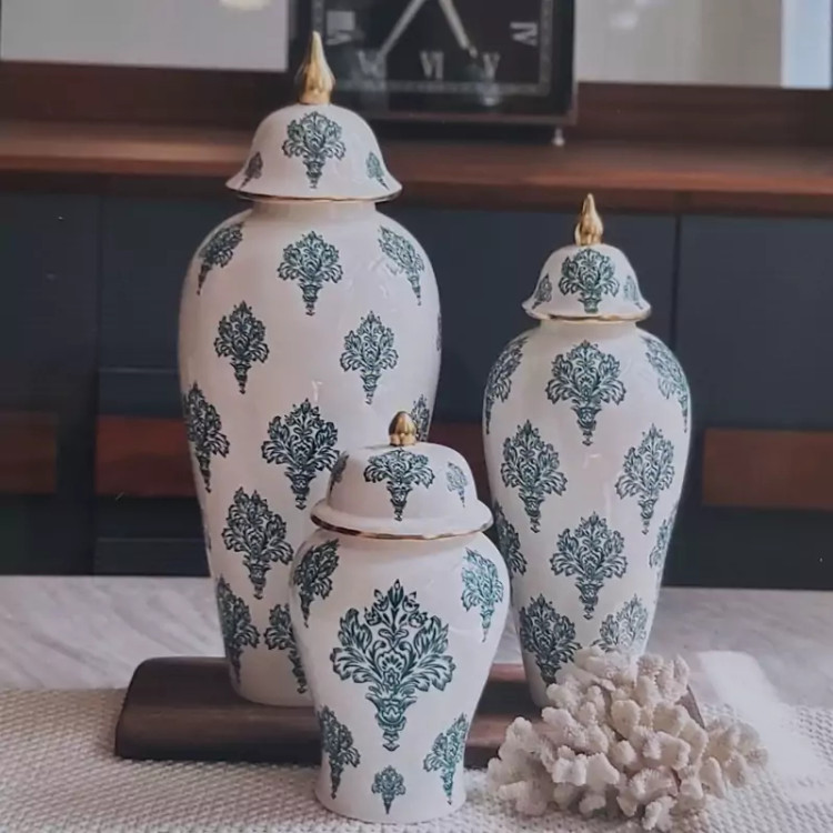جینجر جار سرامیکی سایز متوسط مزینبه لاستر طلا(پرداخت ارسال درب منزل با مشتری)