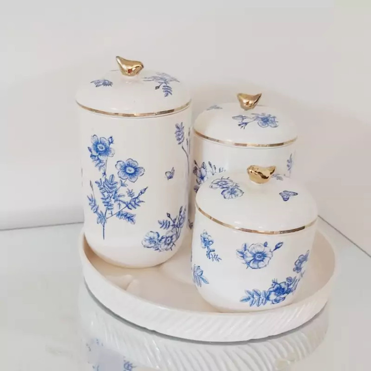 پاسماوری 3عددی سرامیکی مزین به لاستر طلا ( پس کرایه)