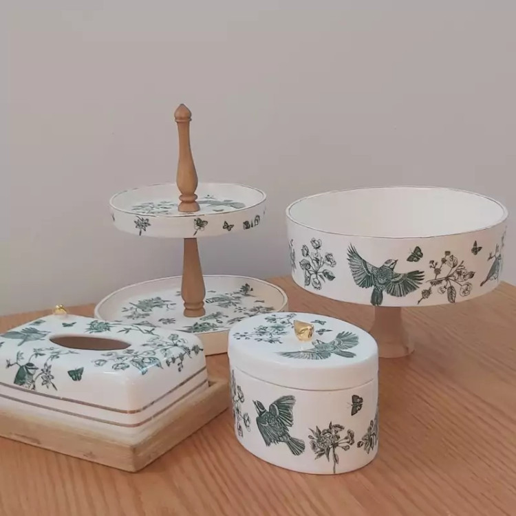 اماده سازی ۱۴روز کاری سرویس پذیرایی شامل شیرینی خوری دوطبقه ۱ تومن.میوه خوری پایه چوبی ۹۸۰ .شکلات خوری بیضی ۵۳۰ جادستمال کاغذی زیره چوبی ۵۷۰ اقلام قابل تغییر است ارسال با چاپار و پرداخت هزینه ارسال با مشتری بعد ثبت کنسلی ومرجوعی نداریم