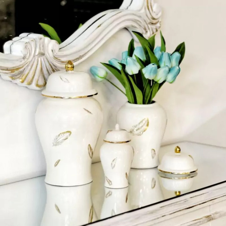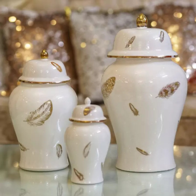 جینجر جار سرامیکی دستساز طرح پر طلایی(ارسال پس کرایه و پرداخت پست درب منزل)
