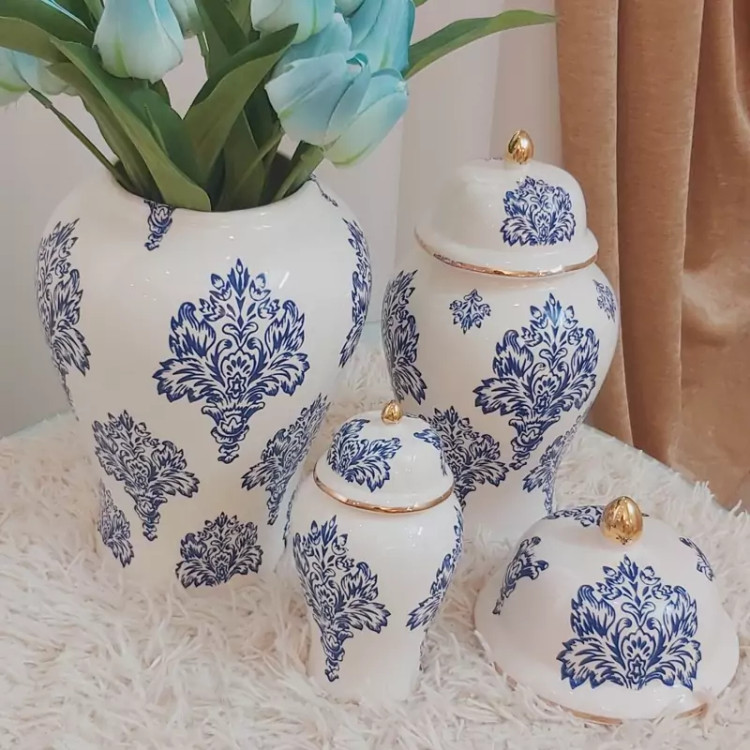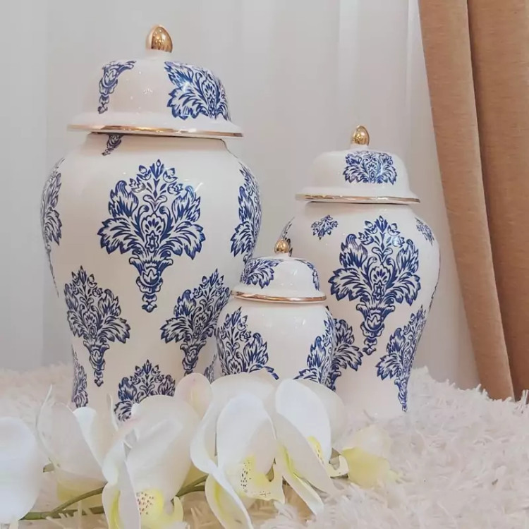 جینجر جار سرامیکی 3سایزی طرح شاه صنم آبی(پرداخت پست درب منزل با مشتری)