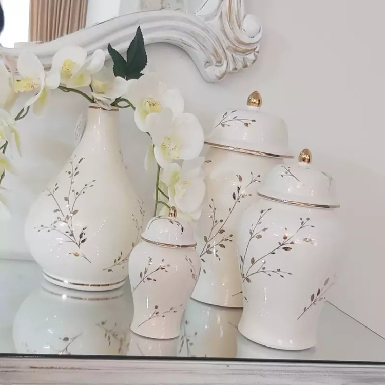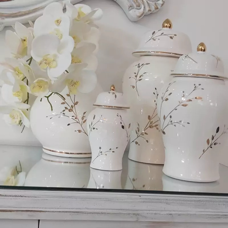 جینجر جار سرامیکی دستساز فقط سایز بزرگ مزین به ورق طلا 12عیار(پرداخت چاپار درب منزل)