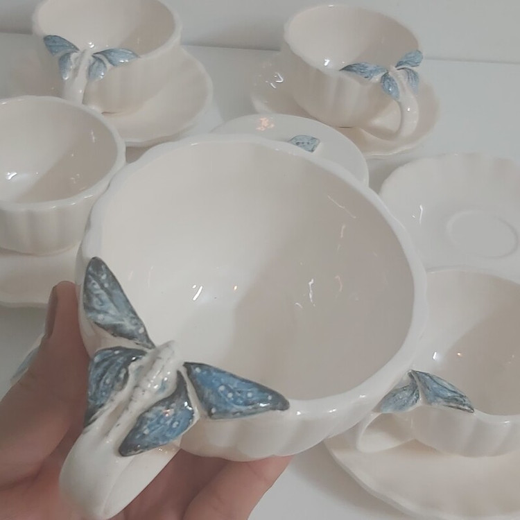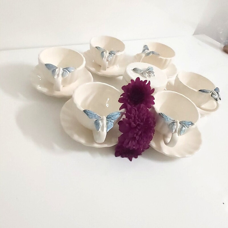 چای خوری سرامیکی برجسته (فنجان ) 6عدد فنجان نعلبکی (ارسال با چاپار و پرداخت درب منزل)