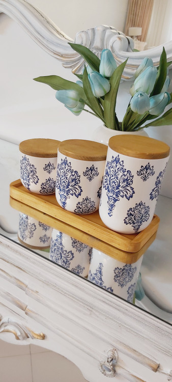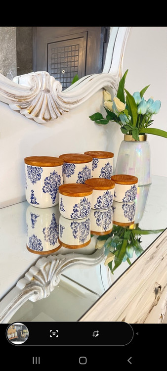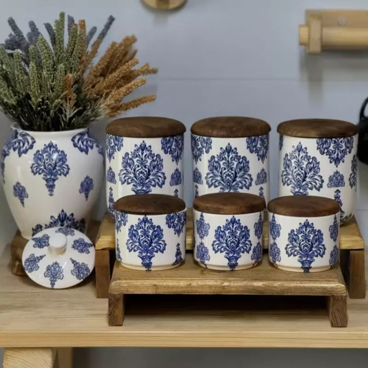پاسماوری 6تایی قلم آبی سرامیکی درب چوبی(پرداخت هزینه ارسال درب منزل با مشتری)