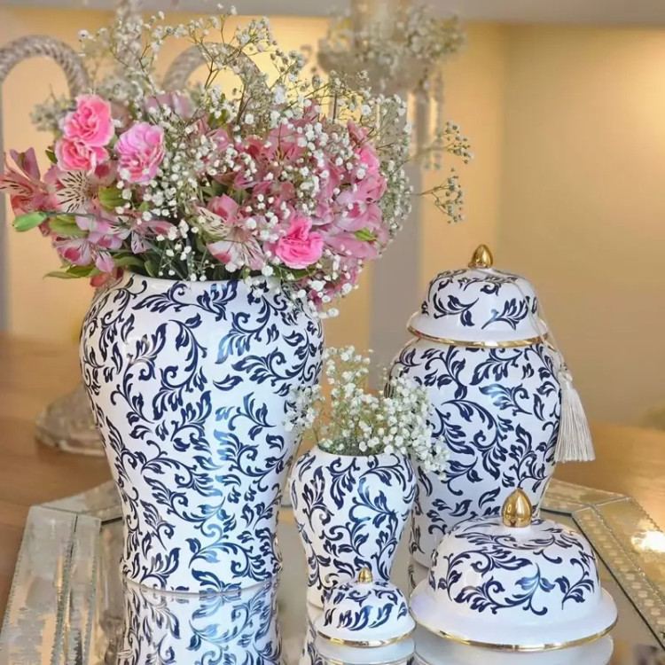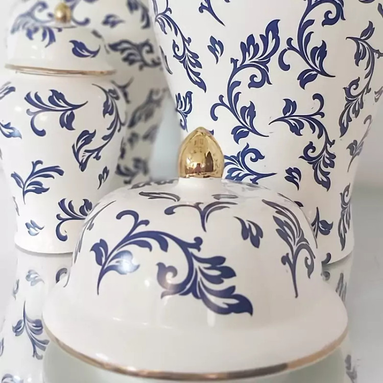 ست سه تایی جار سرامیکی قلم آبی مزین به لاستر طلا 12عیار به صورت تکی هم قابل سفارش است قابل استفاده روی کنسول و میز مبلمان به عنوان گلدان و اکسسوری ارسال با چاپار و هزینه درب منزل با مشتری