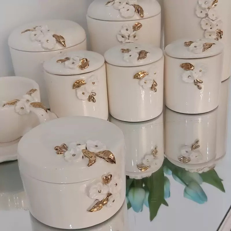 پاسماوری سرامیکی۶پارچه دستساز گل برجسته با لاستر طلا(ارسال با چاپار. پرداخت هزینه پست درب منزل)