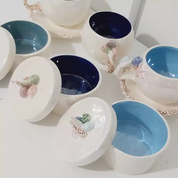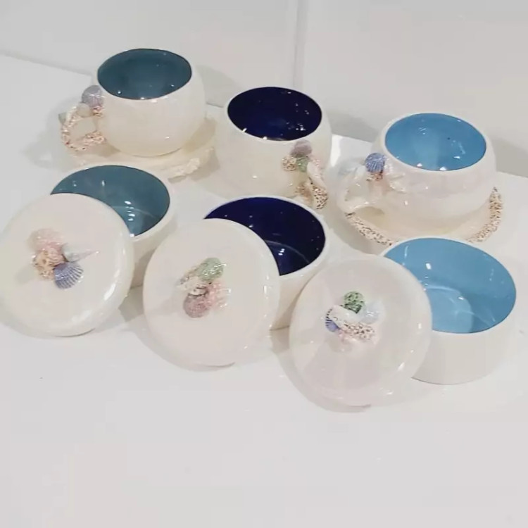 فنجان نعلبکی بهمراه قندان .ماگ طرح های دریایی رنگ دلخواه( پس کرایه)